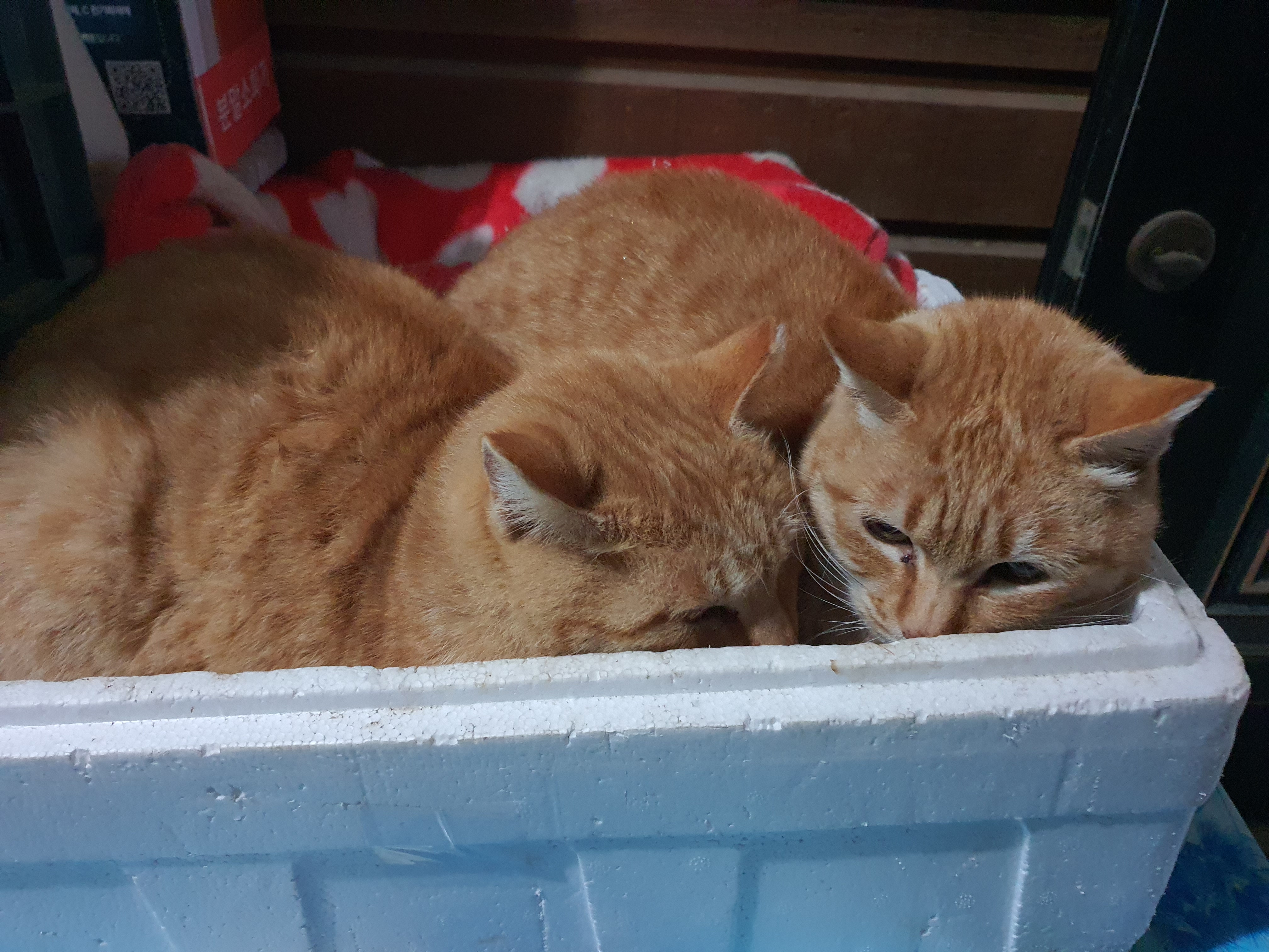 둘이 의지하고 자고 있네요