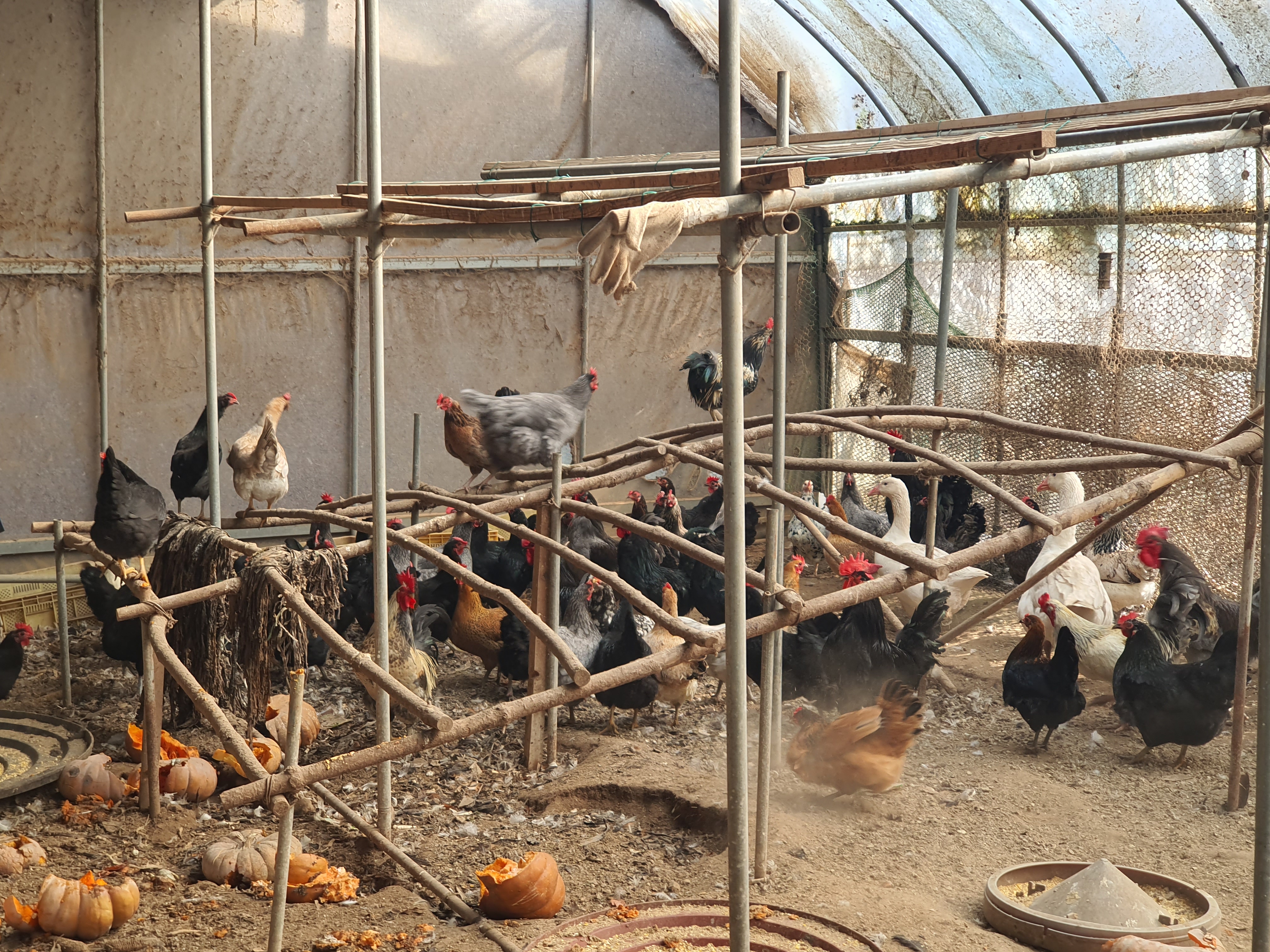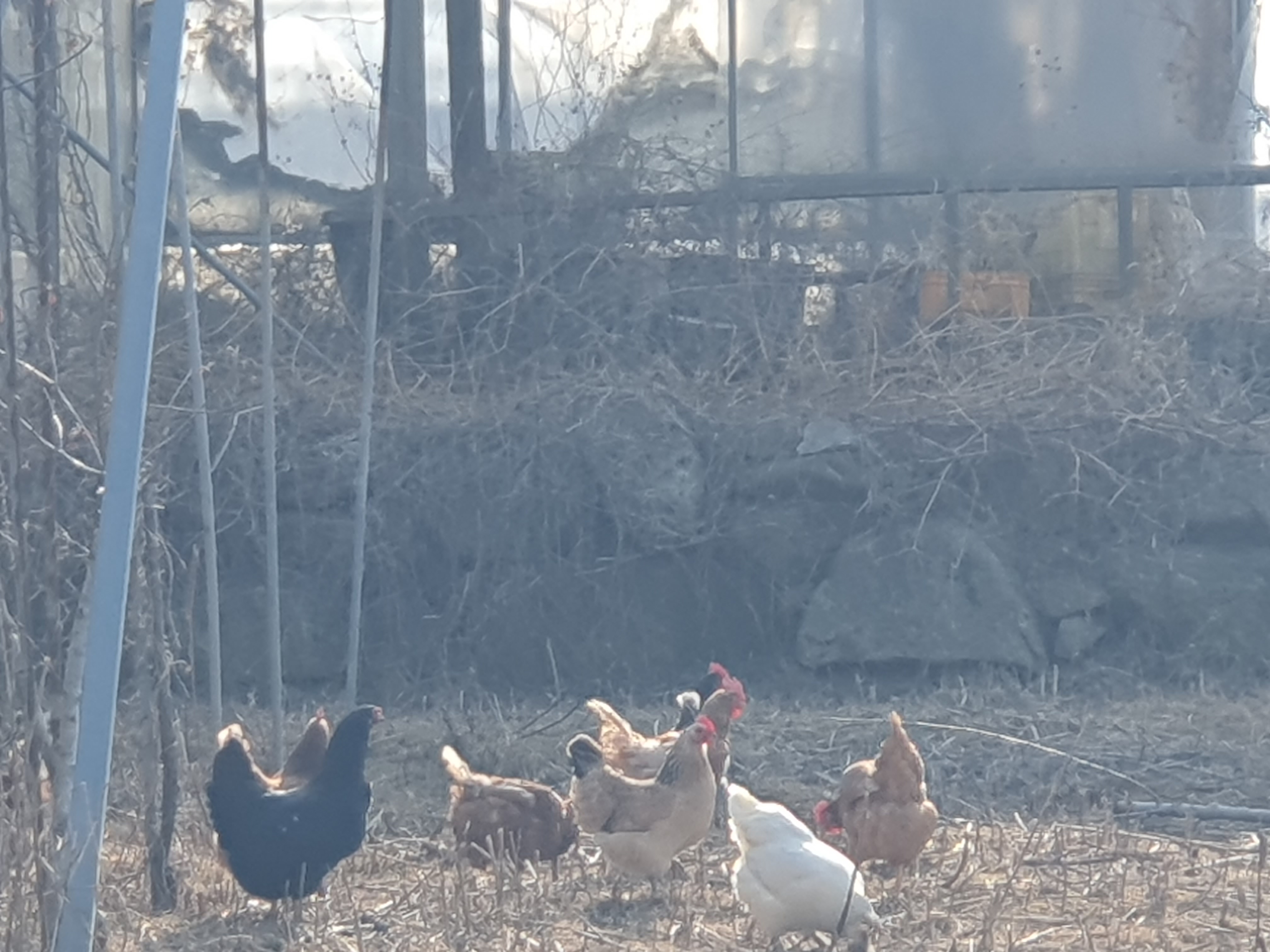 땅을 파헤치고 무엇인가를 찾아 먹는 닭