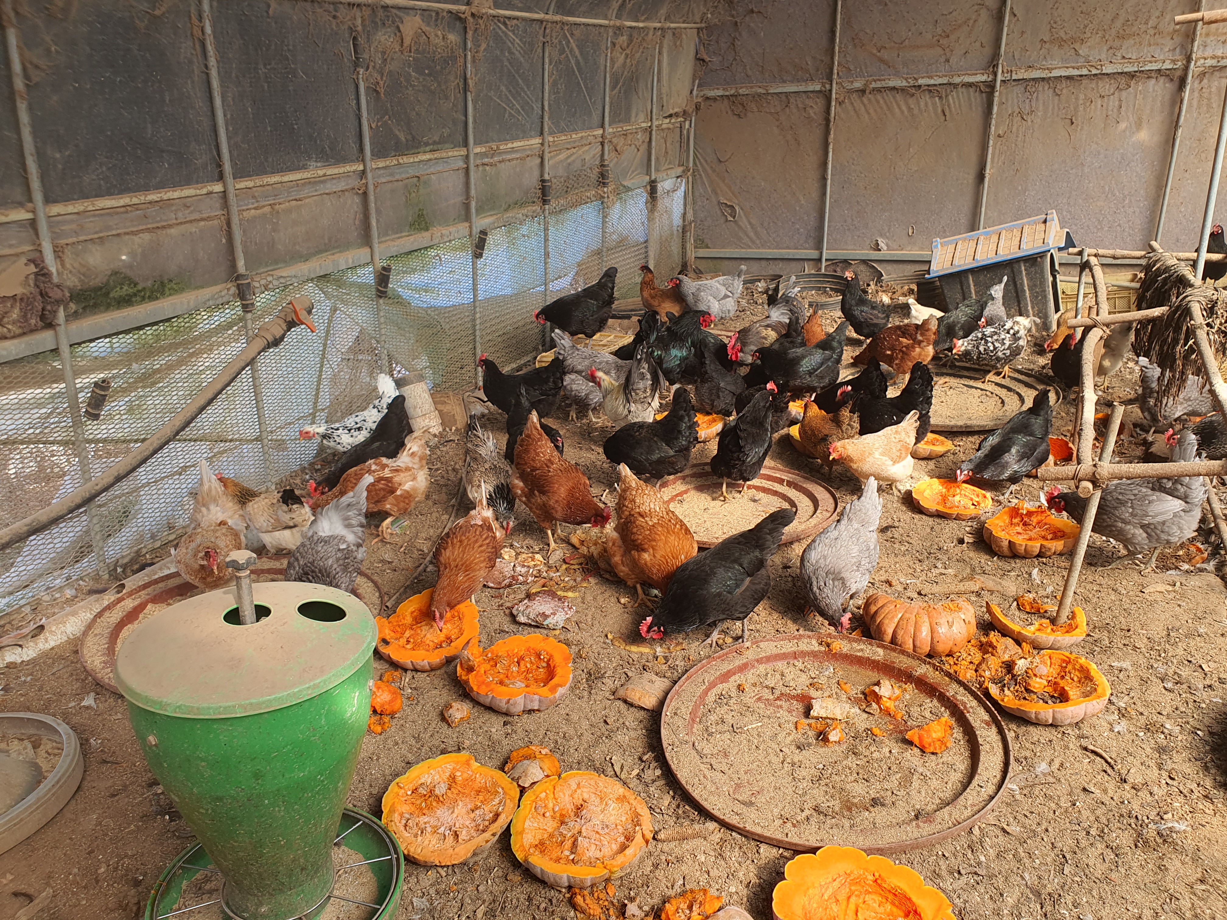 닭들에게 늙은호박을 주었어요