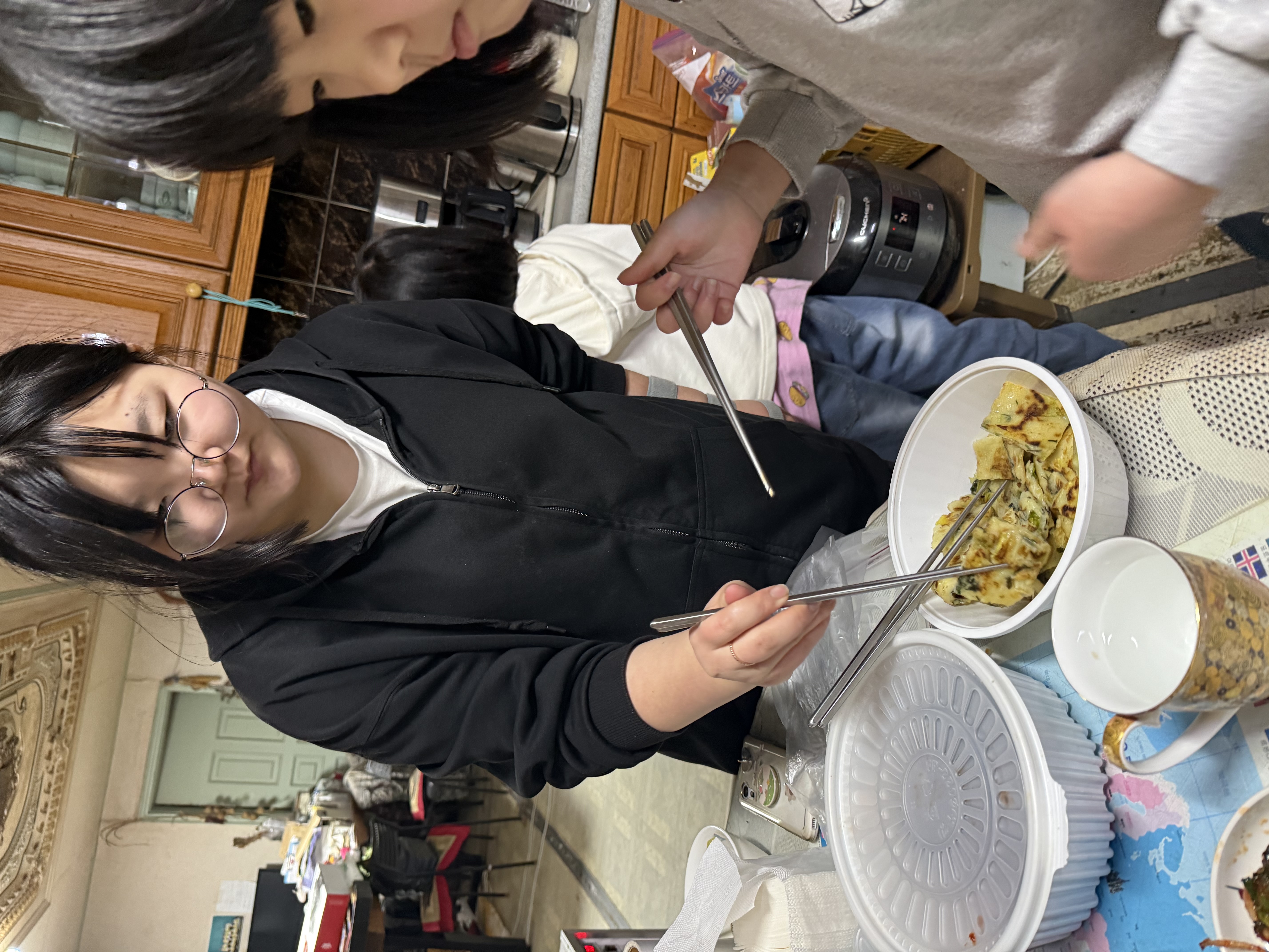배추전 맛있게 먹는 영은이와 영선이